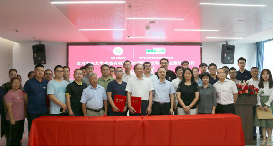 9月30日,南京農業大學沈其榮生物有機肥研究團隊與漢和生物全面戰略合作簽約儀式在南寧市生物技術中心舉行,南京農業大學沈其榮教授、李榮副院長、黃啟為教授,海南大學阮云澤副院長,漢和生物董事長梁承、總經理羅培繁、副總經理余義發等出席簽約儀式。雙方將以哈茨木霉菌為核心,合作開發一系列包括解淀粉芽孢桿菌、貝萊斯芽孢桿菌、淡紫擬青霉等在內的微生態制劑,加強植物病害生物防治技術和人才交流。