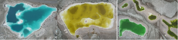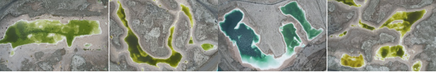 翡翠湖位于昆侖山腳下,由昆侖山融雪匯集鹽分,經(jīng)年累月而成,由于其所含礦物質(zhì)的種類不同,形成各個(gè)大小不一,顏色形態(tài)各異的鹽湖。科考隊(duì)員們第一次見(jiàn)到如此夢(mèng)幻的景象,都非常激動(dòng)和興奮。 由于游客較多,我們用無(wú)人機(jī)從空中俯瞰,選取了幾個(gè)具有典型特征且人跡稀少的區(qū)域取樣。