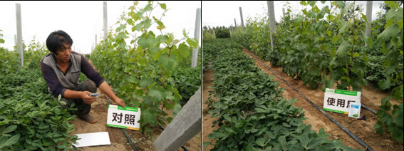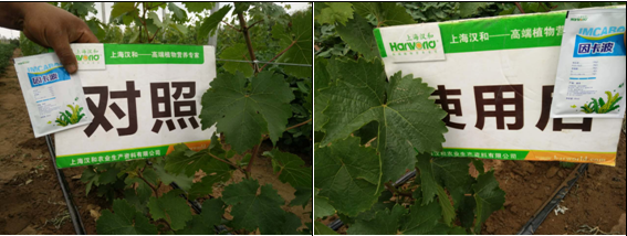 在葡萄苗期,葉面噴施因卡波750倍,1次,具有以下效果: